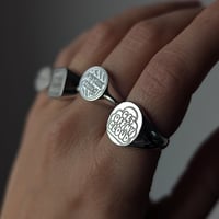 Oval shaped solid 925 sterling Silver signet ring with engraving. Perfect for a fan of any music genre, this ring is inspired by the rockers; Rolling Stones, Rapper - Method Man and Bass Funk legend Bootsy Collins.